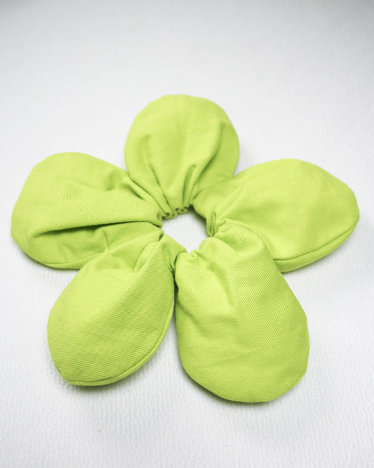 Flower scrunchie in lime green cotton drill
