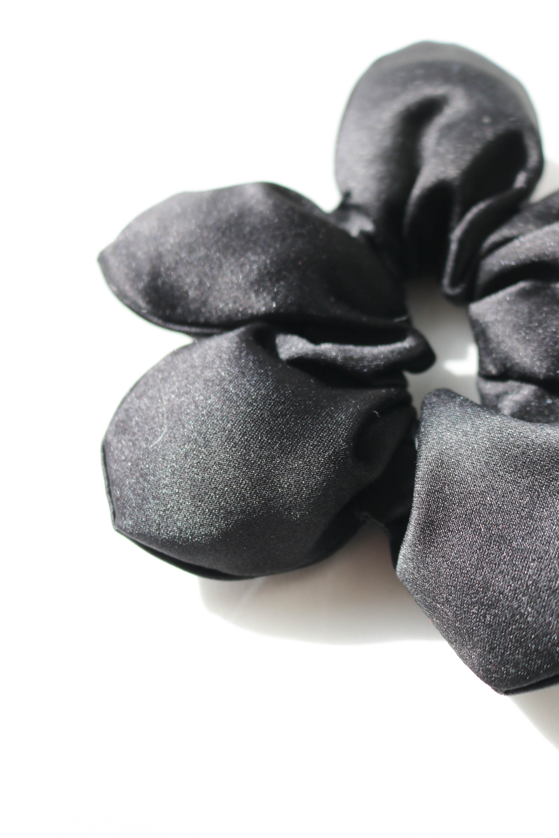 Cute, statement hair scrunchie made from luxury duchess satin fabric. Lightly stuffed so it holds its flower shape.