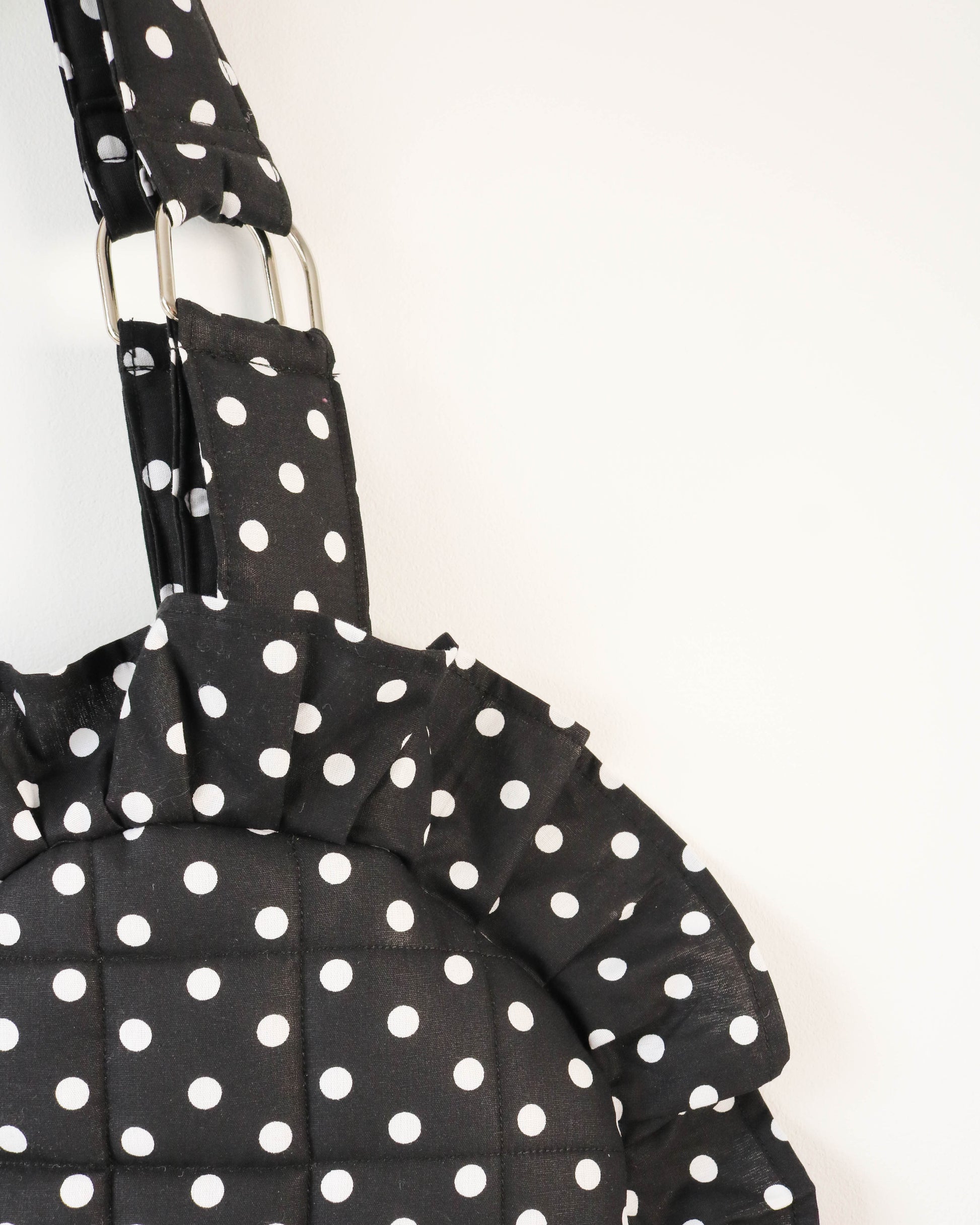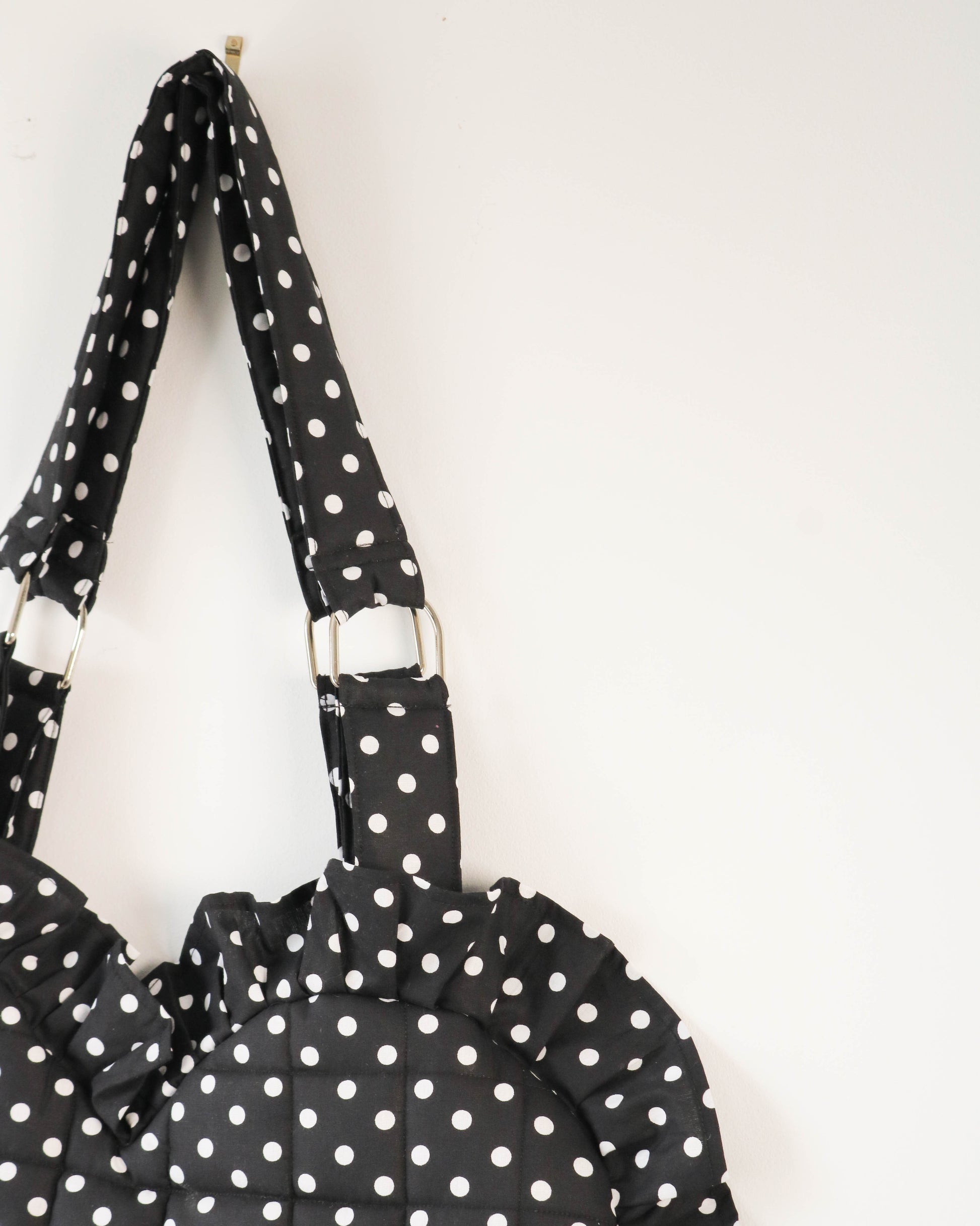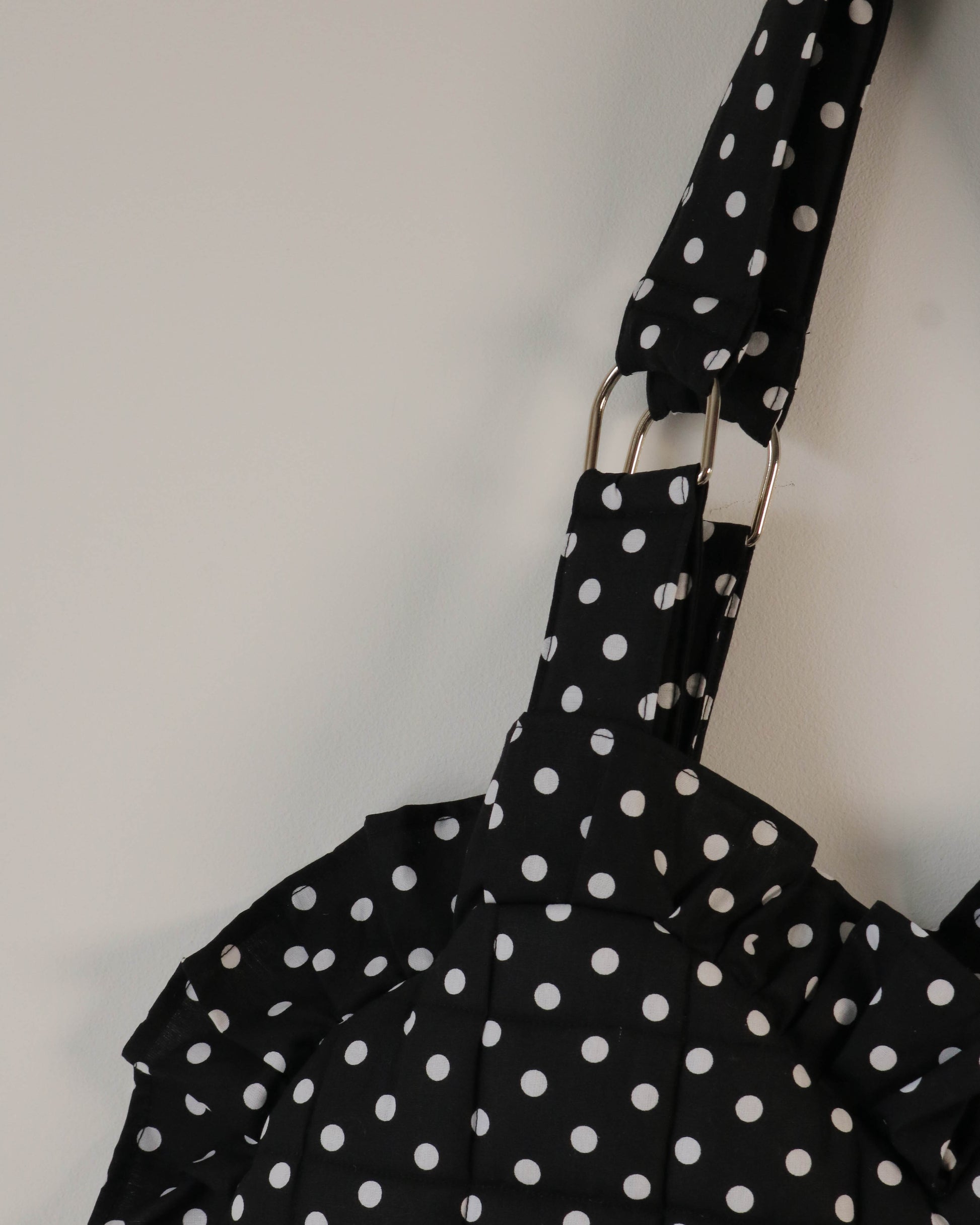 Fabric: polka dot cotton, black deadstock lining, chrome hardware
